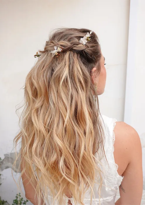 סיכות לתסרוקת שיער, שזורות בפרחים מיובשים/משומרים