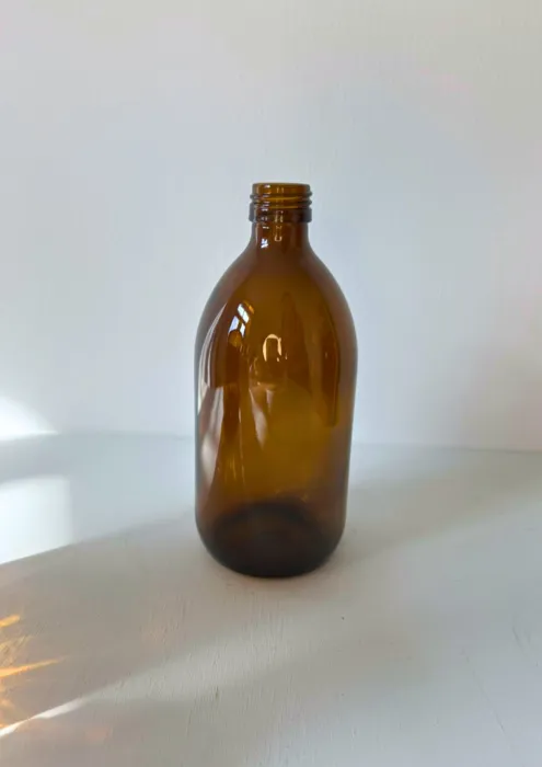 ואזת זכוכית פיה צרה בגוון חום עמוק.