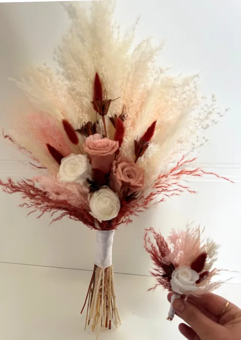 זר כלה טבעי המורכב מצמחים מיובשים ומשומרים באיכות הגבוהה ביותר,