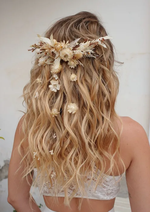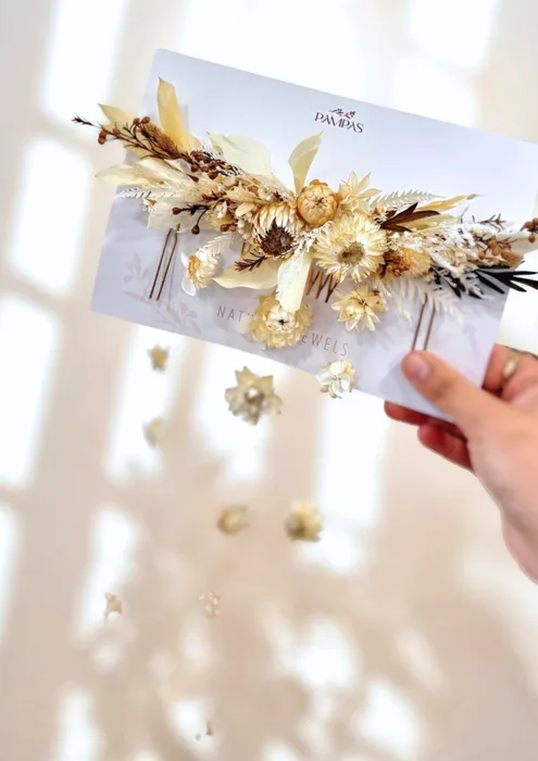 תכשיט שיער בוטני, עשוי מפרחים מיובשים ומשומרים,