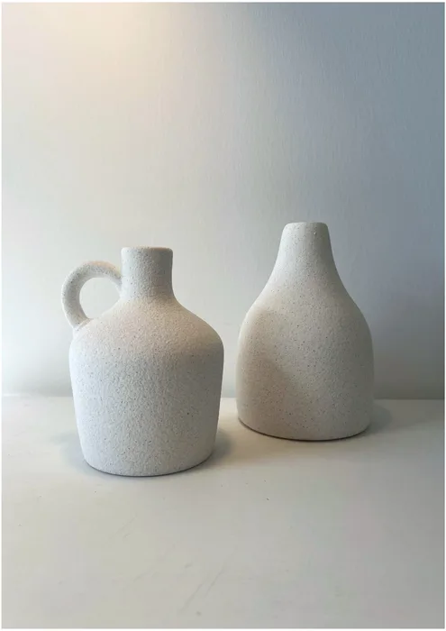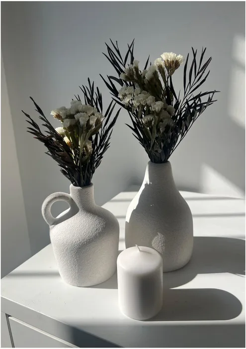 סט כולל: ואזת טוסקנה 10X14 וואזת דיונה 11X16 עם סידור פרחים, (גרבילאה ועדעד לבן משומרים) ונר.