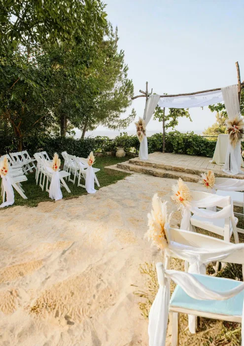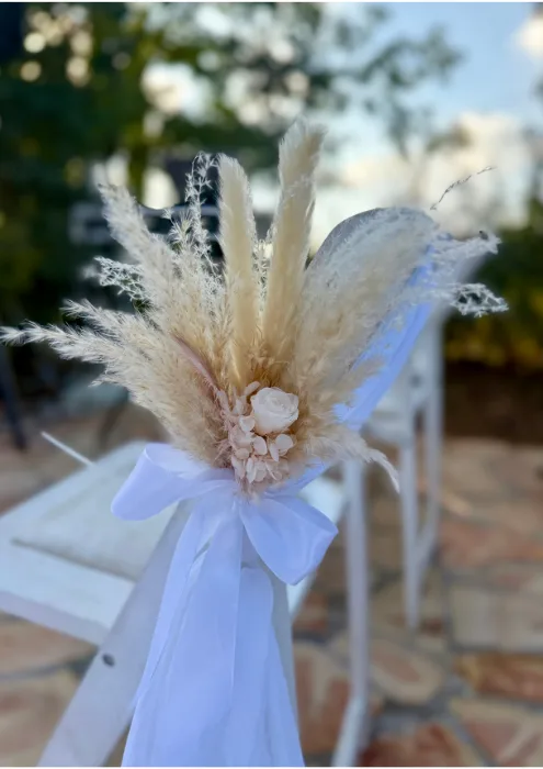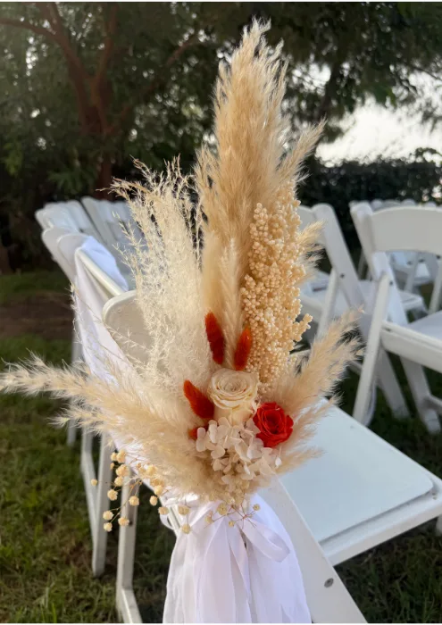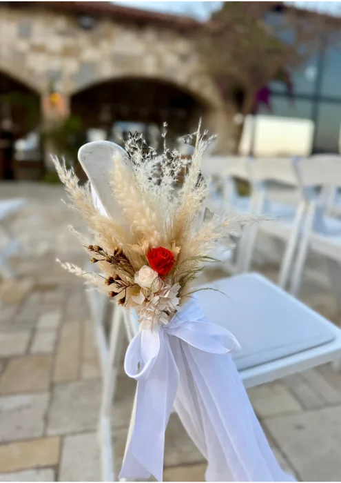 עיצוב שביל חופה: סט של 6 זרים מעוצבים לכסאות השדרה, הממשיכים את הקו העיצובי ההרמוני לאורך כל מתחם הטקס.