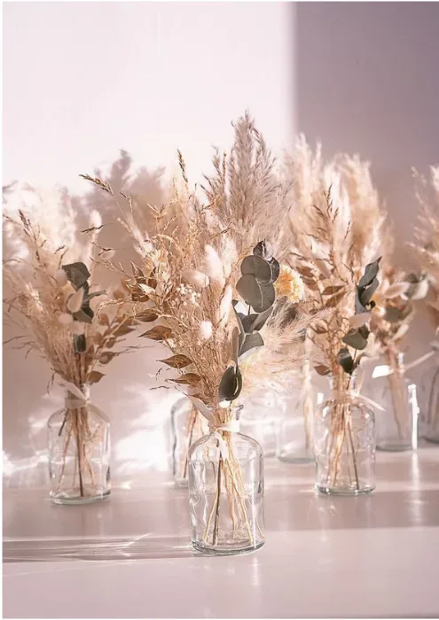 פתרונות עיצוב עבור מרכזי שולחן לחתונה מפרחים יבשים