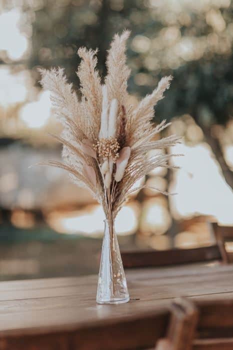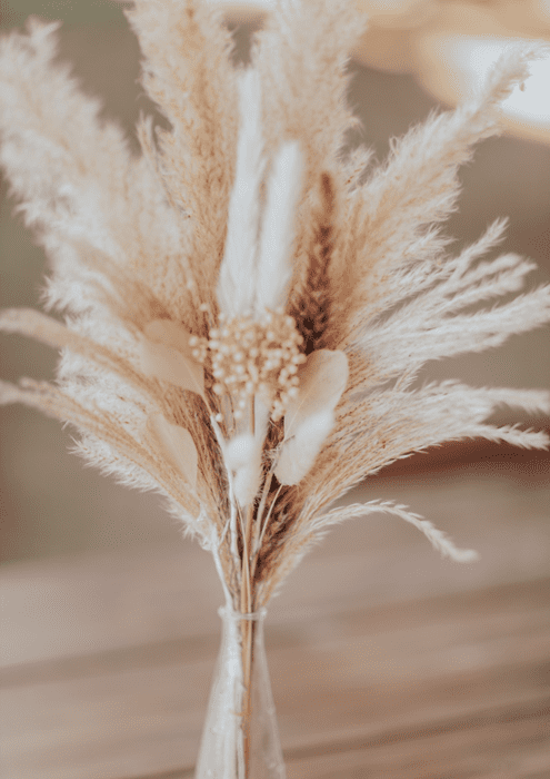 בשילוב פרח כדורי עדין, מגוון סוגי הפמפס, נוצות בגוון אפרסק, ועוד.