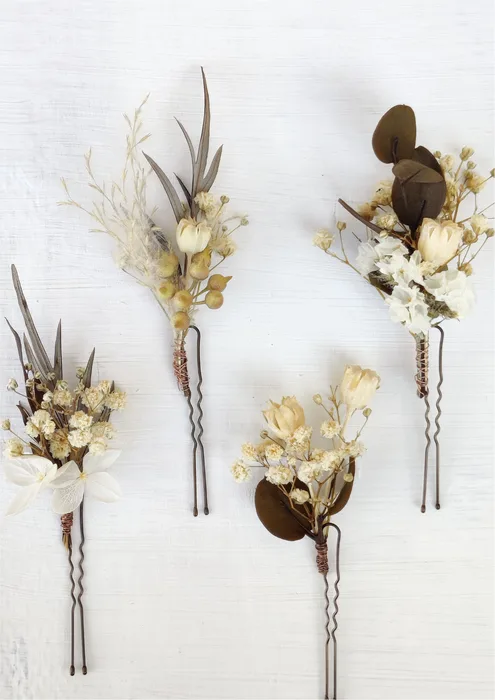 סיכות לתסרוקת שיער, שזורות בפרחים מיובשים/משומרים