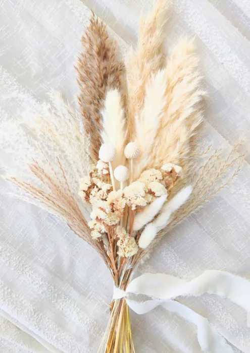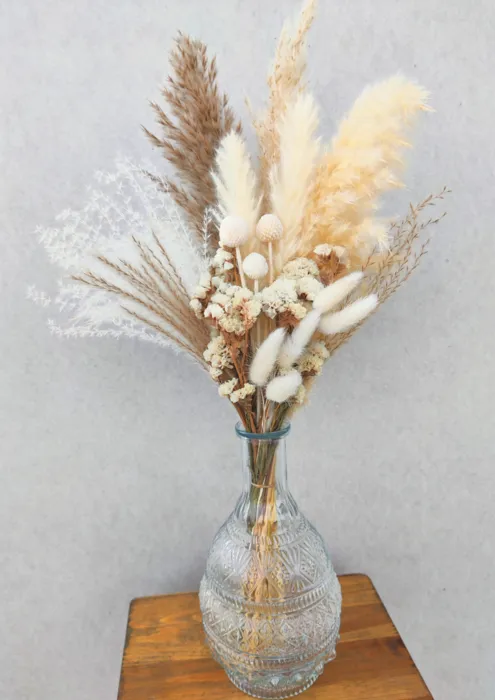 הזר מורכב ממגוון סוגי פמפסים, בשילוב כדורי קרספידיה מולבנים, פריחת העדעד ועוד.