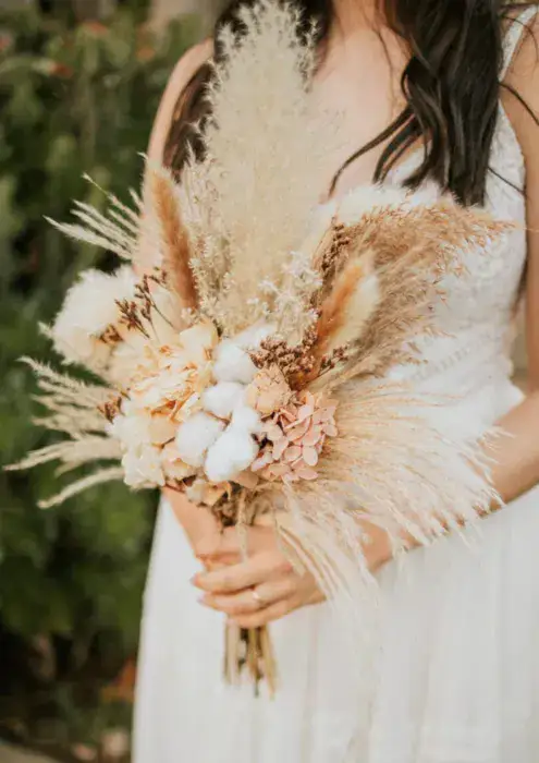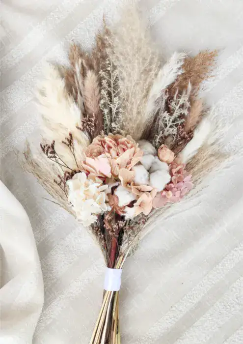 מגוון סוגי פמפס בגוני קרם בז' ולבן, פריחת ההורטנזיה ועוד.