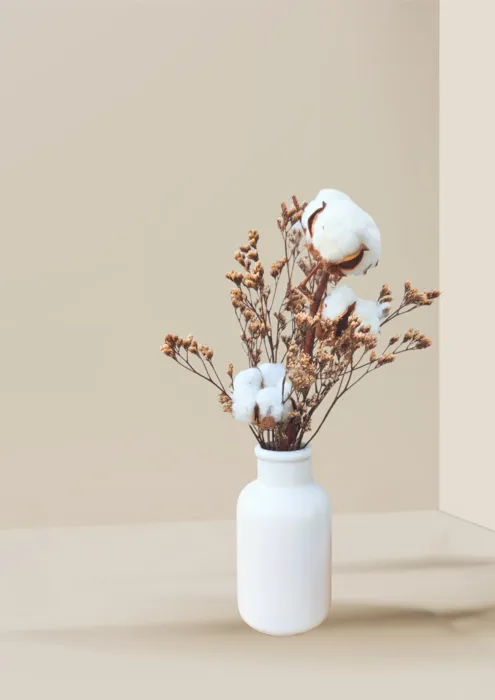זר בשילוב ענף כותנה וענפי לימוניום משומר בגוון ורוד עתיק