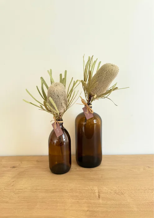 ואזת זכוכית פיה צרה בגוון חום עמוק.