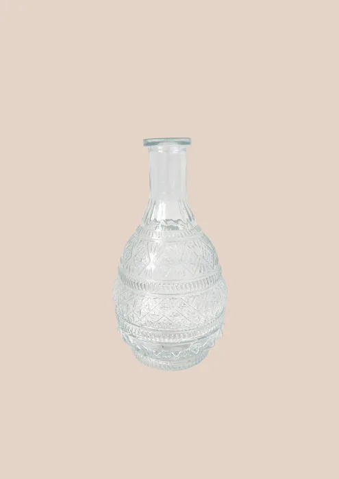 כלי זכוכית מעוטר בסגנון בוהו, סיומת פיה צרה.