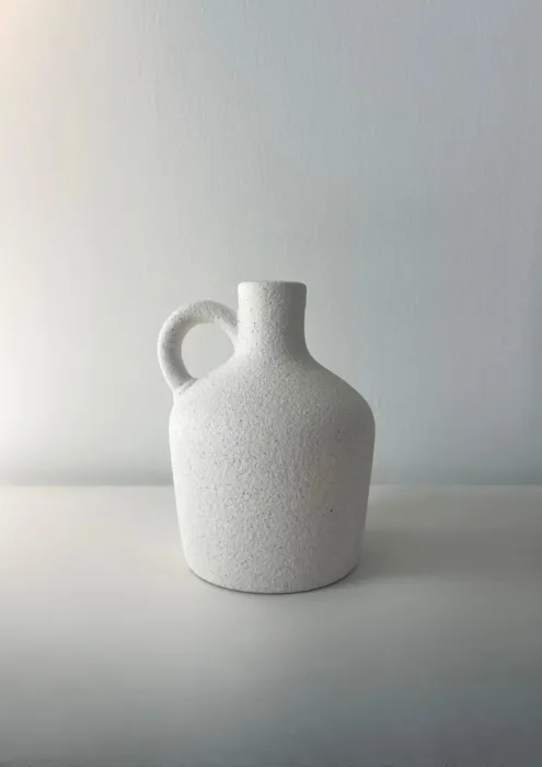 כלי קרמי בגימור מט חולי בעיצוב אלגנטי עם ידית צדדית ייחודית.