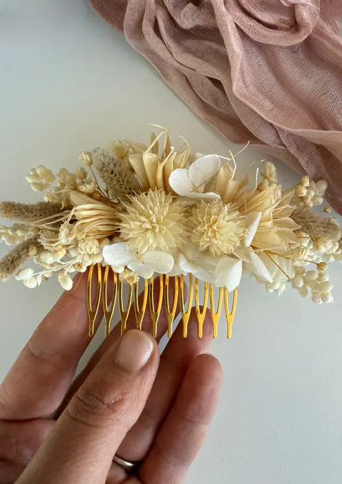מסרקית שיער טבעית, עשויה מפרחים מיובשים/משומרים,