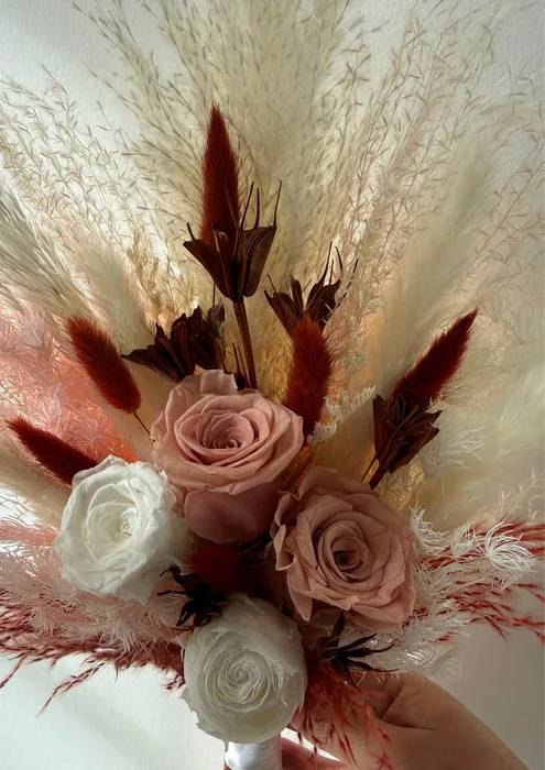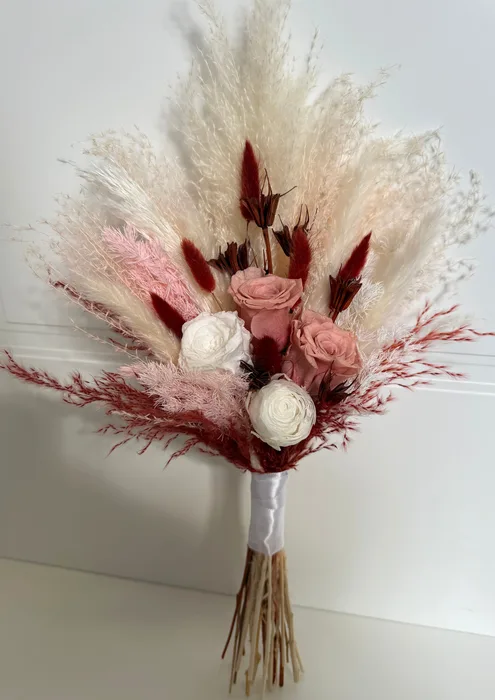 זר כלה טבעי המורכב מצמחים מיובשים ומשומרים באיכות הגבוהה ביותר,