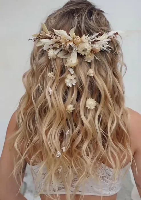 תכשיט שיער בוטני, עשוי מפרחים מיובשים ומשומרים,